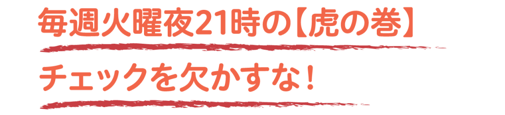 当機構では週末の情報販売について「火曜:21時」に、【今週の虎の巻】と題し販売予定商品の発表が行われます。