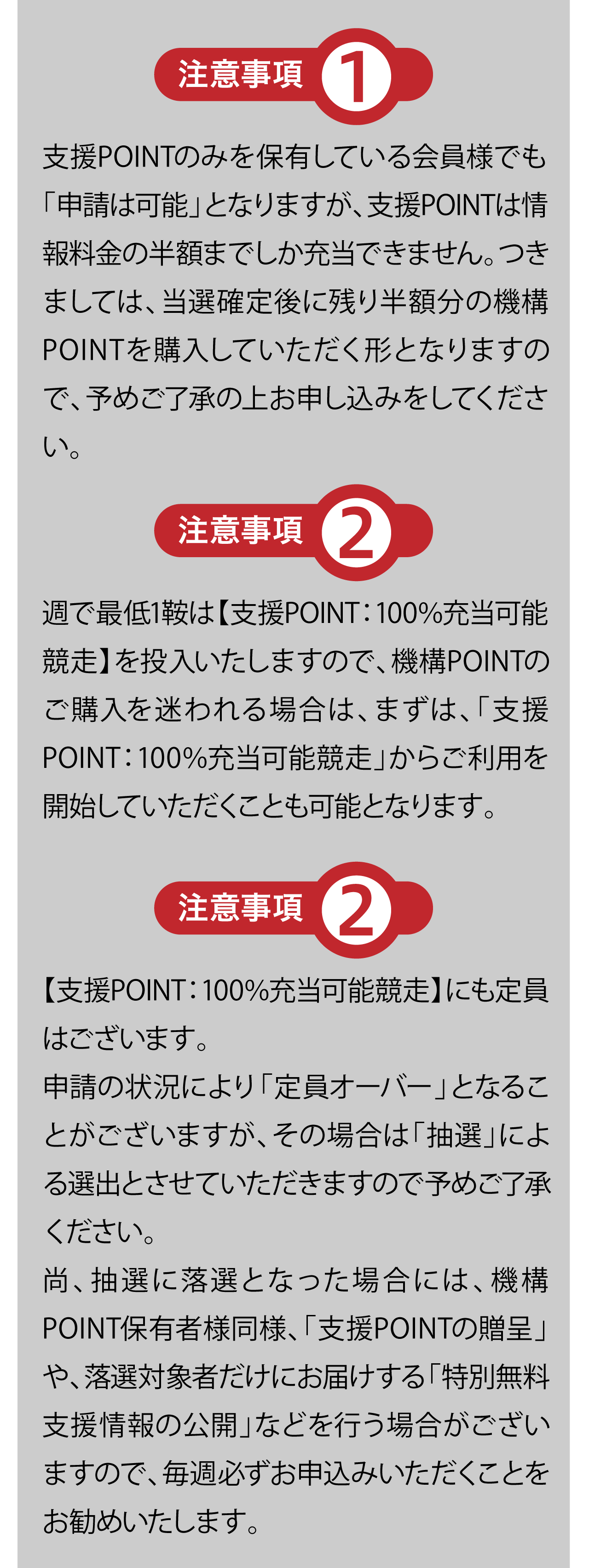 当機構の商品は基本的には「機構POINT」にて販売しておりますが、毎週最低1鞍は「支援POINTだけ」でご購入いただける、